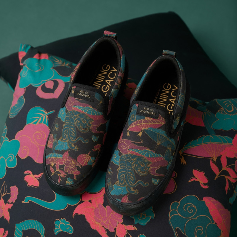 Née d’un amour commun pour le Vietnam, la collaboration N’GO x METISEKO célèbre la richesse culturelle et artistique du pays à travers une slip-on audacieuse et colorée.