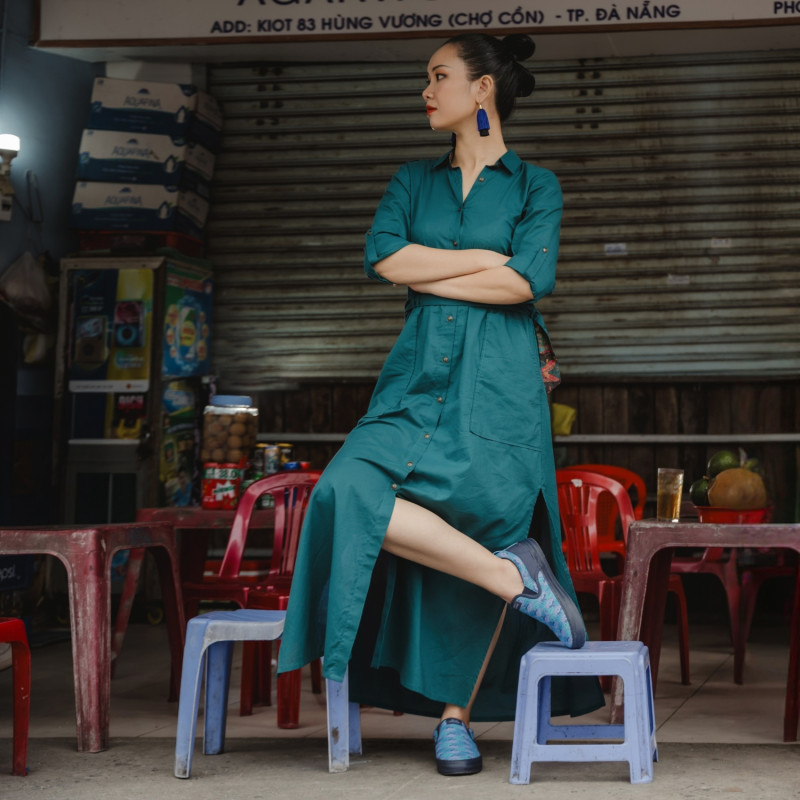 Facile à enfiler et confortable au quotidien, DONG HO se distingue par ses imprimés inspirés des symboles traditionnels vietnamiens. La chèvre, symbolisant l’harmonie et à la sérénité, évolue entre montagnes et éventails, apportant équilibre et légèreté.