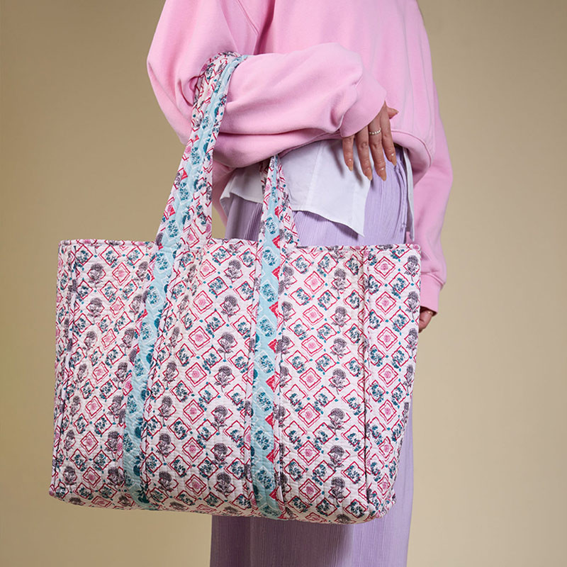 Pour l’amour du fait main & de l’artisanat, la dévotion des motifs. Un dialogue créatif qui sublime deux héritages et préserve des artisanats d’exception. Imprimé à la main grâce au traditionnel block print indien, symbole d’un vrai savoir-faire artisanal. Cette collaboration avec la maison Jamini donne naissance à un cabas multi-fonctions. Polyvalent et pratique, il s’adapte à tous les moments. Du marché dominical à un après-midi au parc, aussi idéal pour y glisser ses affaires de sport.
