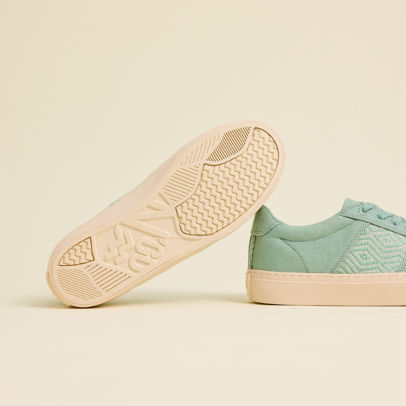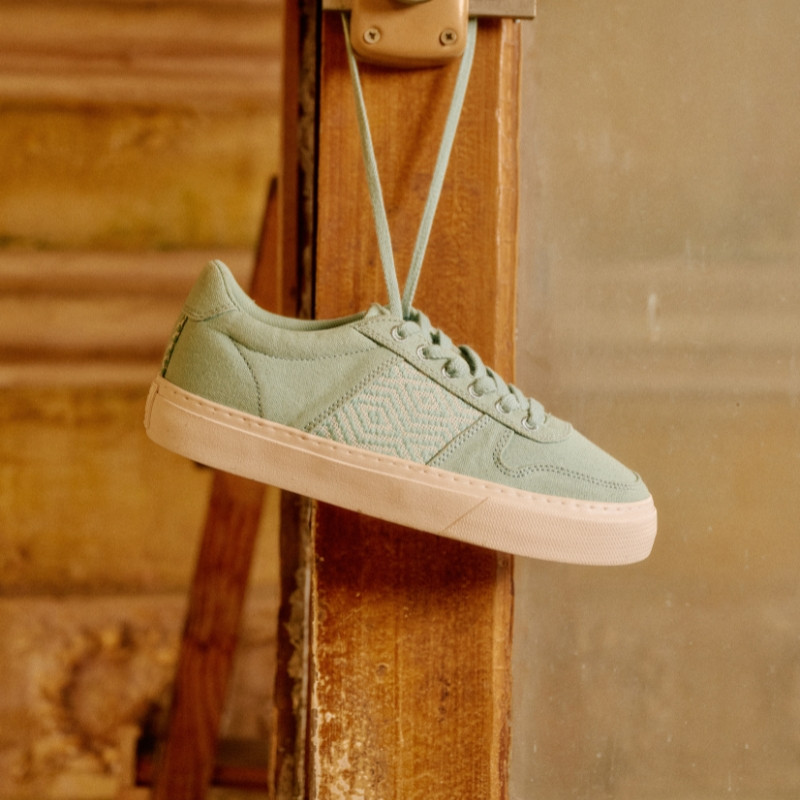 Pour que cette paire tienne plus d’un été, les équipes N’go ont sélectionné une toile de coton organique épaisse et certifiée GOTS pour la tige, la doublure intérieure et les lacets. En choisissant de limiter les matériaux, N’go s’assure également de limiter le transport pour l’approvisionnement des matières (moins de CO2 rejeté) et le recyclage de la paire en fin de vie (là encore, moins de CO2 rejeté).
